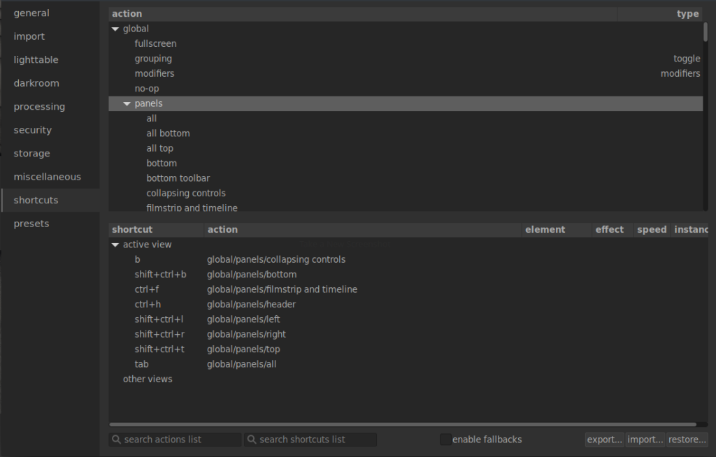 Darktable 3.8 introduce una revisione del suo sistema di scorciatoie da tastiera (shortcut). Praticamente ora potete controllare Darktable attraverso gli shortcu, anche utilizzando nuovi dispositivi di input come controller MIDI e persino i game-pad.